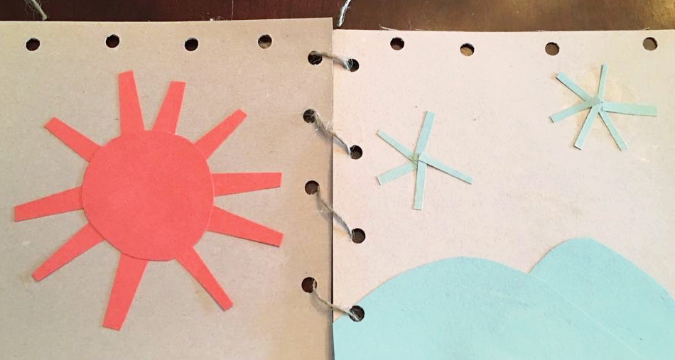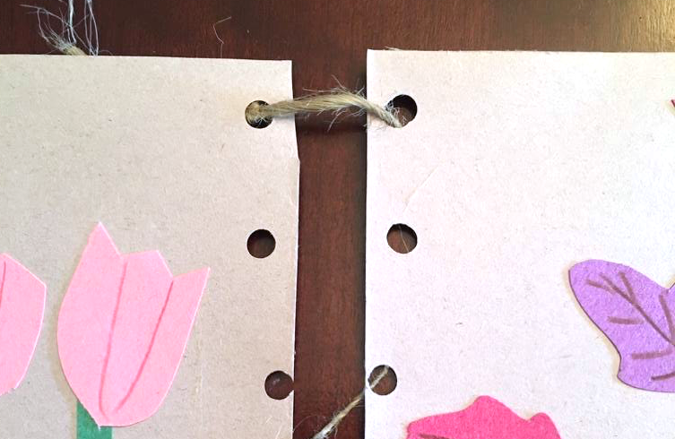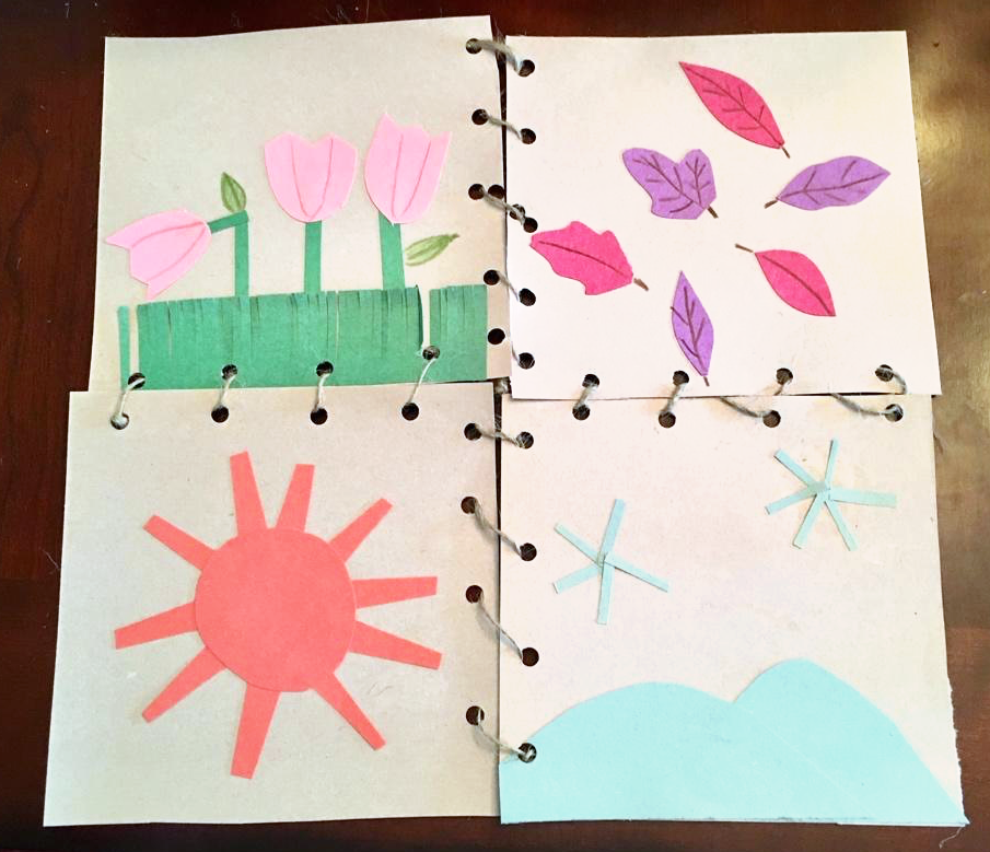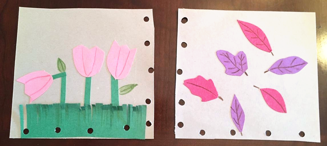6 - When you have all four quilt squares designed and finished, hole punch one of the sides and either the top or bottom of each square. (See example).