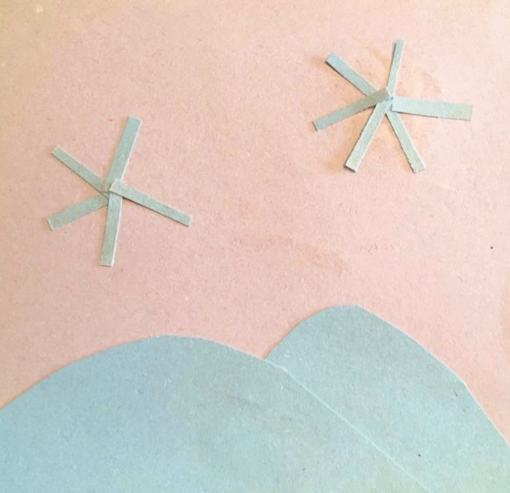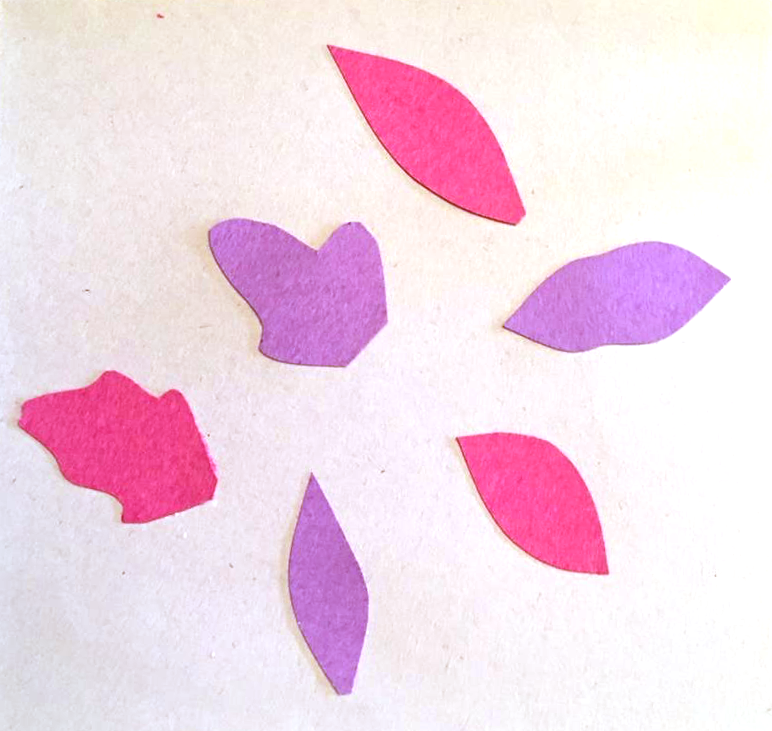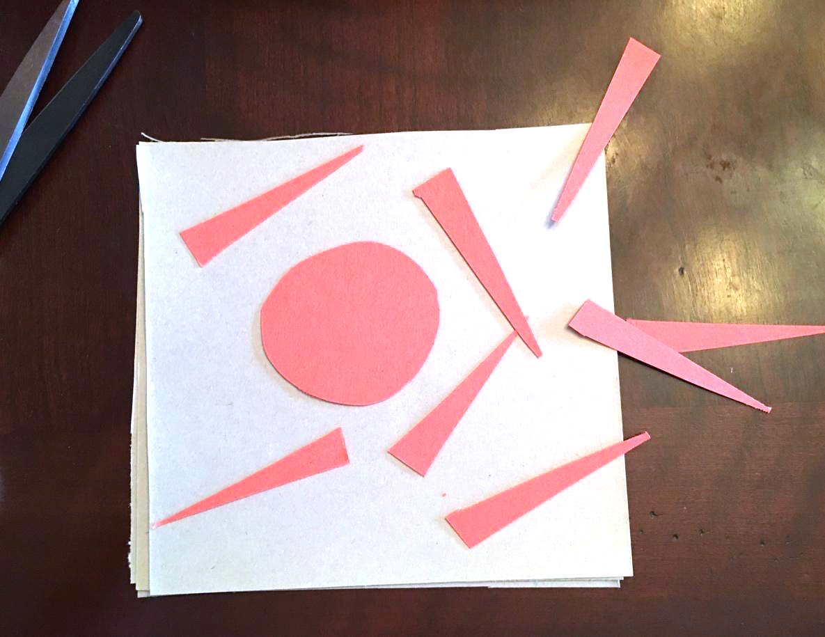 5 - When you have your shapes cut out, arrange them and glue them to the square pieces of white paper or cardstock.